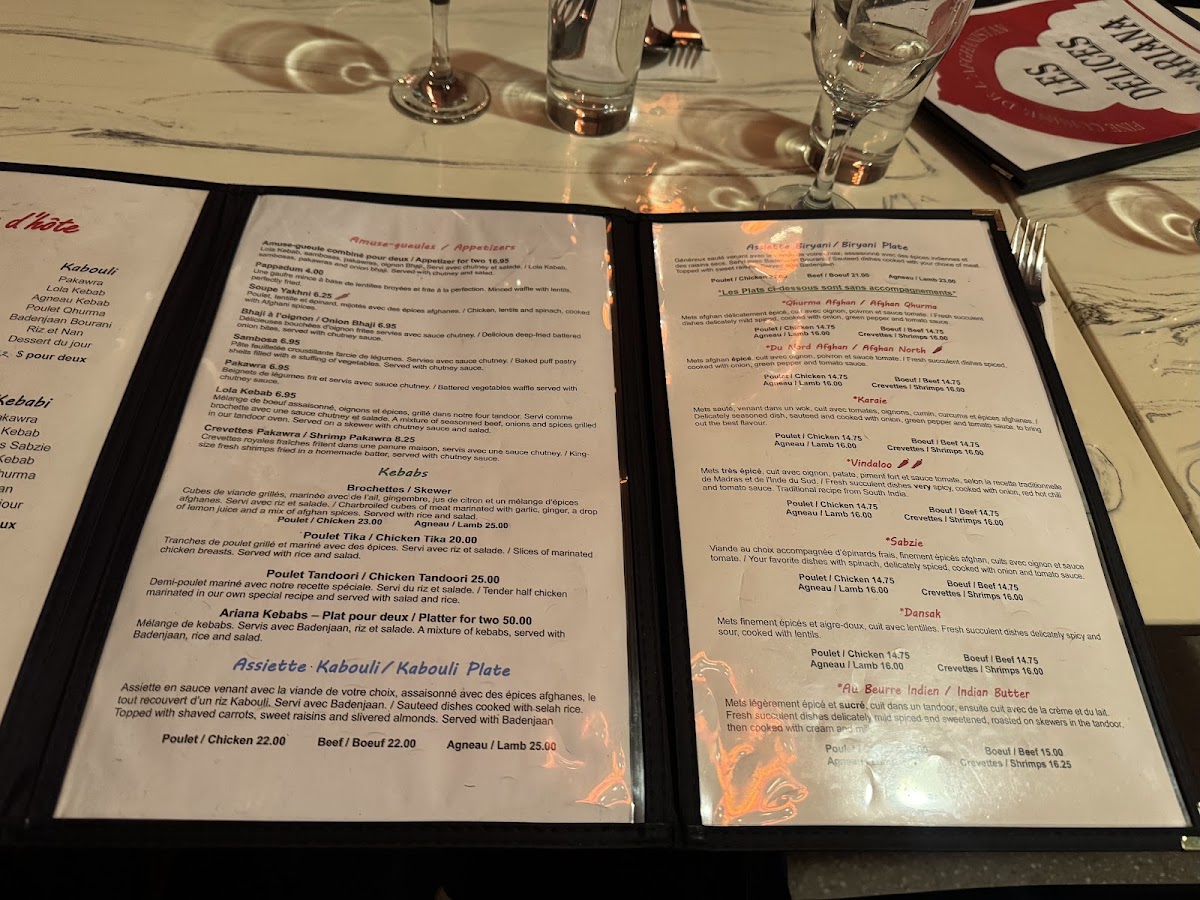 Les délices d'Ariana Menu