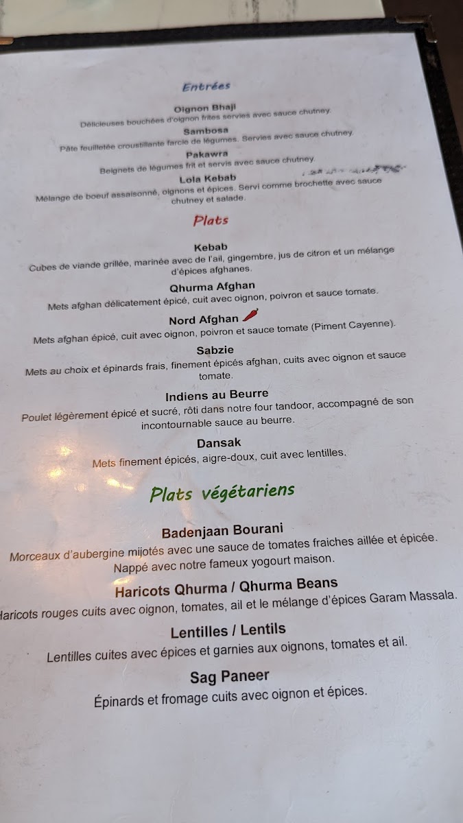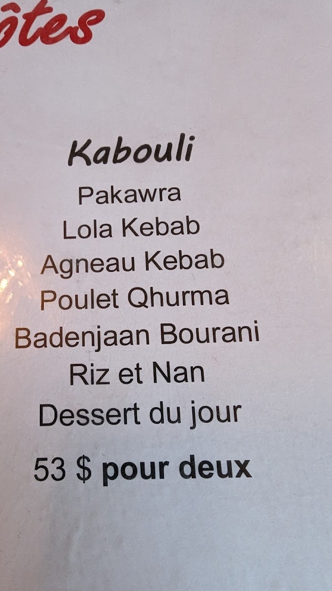 The menu at Les délices d'Ariana features traditional Afghan cuisine with a variety of dishes grouped to offer a comprehensive dining experience. The main categories include Kebabs, Biryani, Vegetarian Dishes, and Desserts.